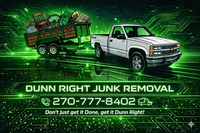 Dunn Right Junk Removal LLC serves Glendale, Elizabethtown, Leitchfield, and the surrounding region with a focus on doing the job right the first time. Whether it's debris from a storm, clutter from a move, or scrap that's been piling up, you're working with a team that understands the area and the urgency that comes with wanting your space back.
