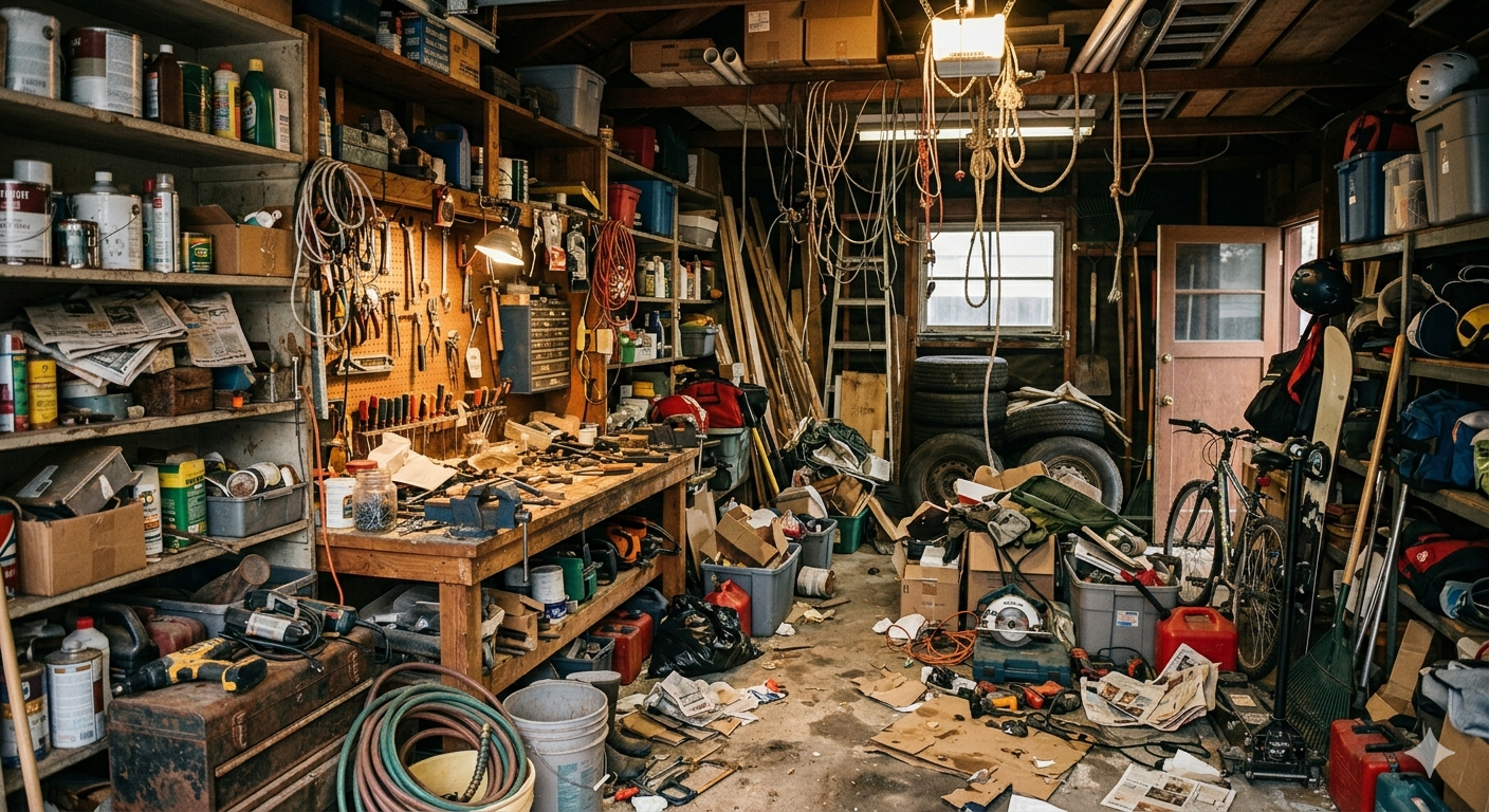 Garage cleanouts start with identifying what stays and what goes, then systematically clearing everything designated for removal regardless of size or weight. The crew brings necessary equipment to handle awkward items like shelving units, water heaters, and riding mowers that require more than two people to lift safely.